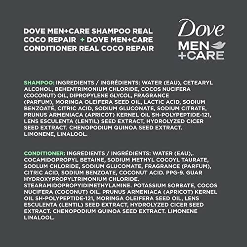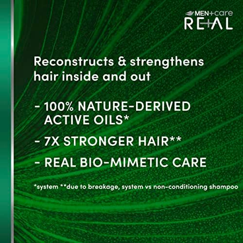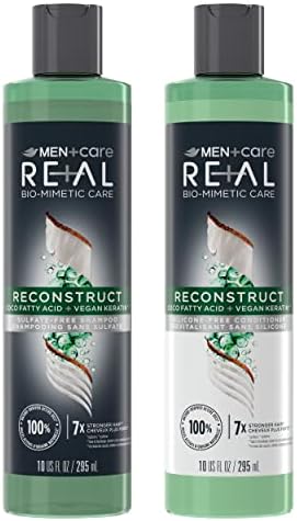 Dove Men+Care Real Bio-Mimetic Reconstructive shampoo and conditioner to significantly repair and enhance damaged hair. Formulated with 100% naturally derived active oil * and infused with plant-based vegan keratin, this nourishing sulphate-free shampoo and silicone conditioner is suitable for damaged hair, preventing breakage and making hair 7 times stronger. System due to breakage, system with non-conditioning shampoo. This system is suitable for damaged hair and helps to regenerate the look and feel of healthy hair. Directions: Apply shampoo to wet hair, lather and rinse. For best results, use Dove Men+Care Real Bio-Mimetic Reconstructive Conditioner, applied from mid-length to the ends of your hair. Leave for 1 minute, then rinse to create strong, healthy hair. This sulfate free shampoo formula contains 0% sulfate, silicone, parabens and 100% biodegradable formula, while our silicone free conditioner formula contains 0% silicone, parabens and 100% biodegradable formula. Biodegradation of components based on OECD test methods (301, 302 and/or 310) and principles. Globally,Dove has not been tested on animals.