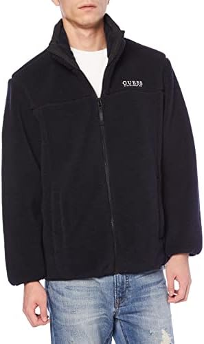 Fleece jacket with pocket collar and GUESS logo on left chest