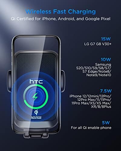 Wireless car charger 15W Qi Fast charging Auto clamp mount windshield dashboard ventilated phone stand compatible with iPhone 11/11 Pro/11 Pro Max/Xs MAX/XS/XR/X/8/8+ Samsung S10 / S10 + / S9 and integrated + / S8 S8 / Note 8/9/10 < / span > < p > < span > brand is introduced: HTC is a brand owned by China's HTC Corporation, founded in 1997,HTC brought the world's first touch-centric smartphone to the world, and HTC brightens life through leading innovation in smart mobile device design and experience. < / span > < / p > < span > < br / > < / span > < p > < span > : < br / > ◀ input: 5 v / 2 A, 9 v / 2 A, 12 v / 1.5 A < br / > ◀ output: 5 W / 7.5 W / 10 W / 15 W (*) < br / > ◀ input port: Type-C