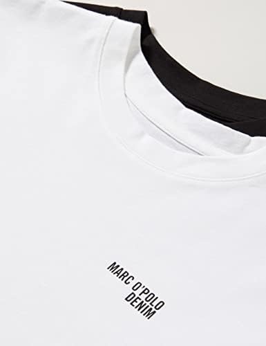 Basic T-shirt, simple design,2 pieces. Regular cut, round neck, short sleeve and straight under cycloid. On the side of the chest is a contrasting understated Logo. Made of pure organic cotton, single-sided plain knit fabric.