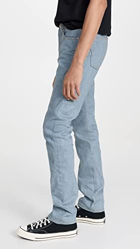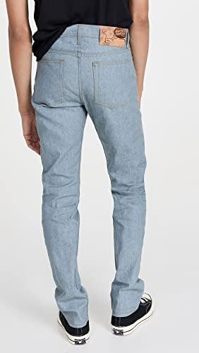 Lightweight reclaimed edging Stone Blue is a 325g Japanese edging denim, made using a unique environmentally friendly recycling denim method. In this process, denim is mixed with undyed cotton and then spun into new yarn. This yarn is used to wave jeans and is responsible for giving Lightweight Recycled Selvedge its unique color, which can only be achieved by this method, although dyed alone. Woven on a vintage shuttle in Okayama, Japan, this denim has a classic original rigid texture. Cut, sew, Canadian built-in contrast stitching, vintage pink edging ID, recycled leather patch, silver metal buttons and rivets. Weird Guy is a standard tapered version with a mid-waist, comfortable top that is tapered from the knee to the hem.