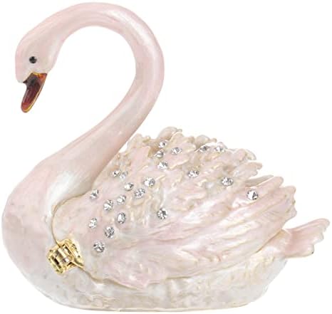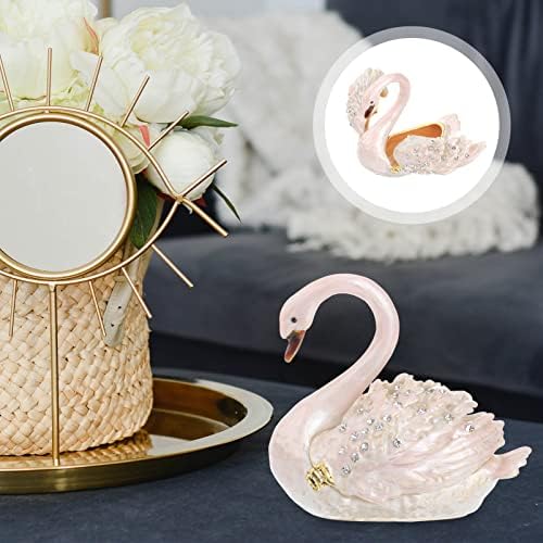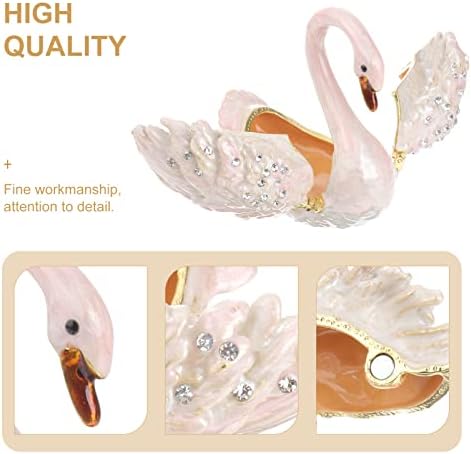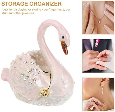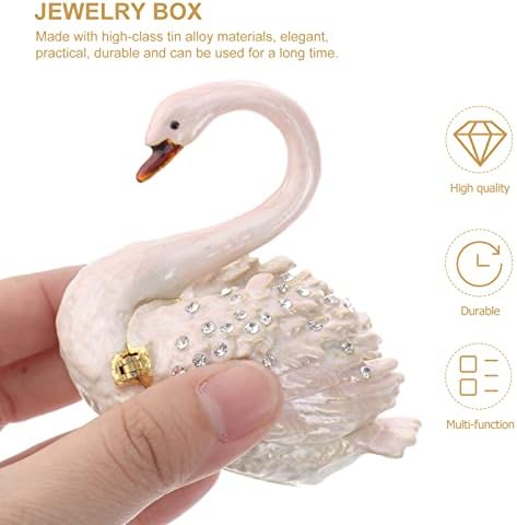 NOLITOY Diamond Swan jewelry box, Hand-painted hinged jewelry box Mini Ring Earrings Jewelry storage box, figurines collection souvenirs Home decor Wedding gifts