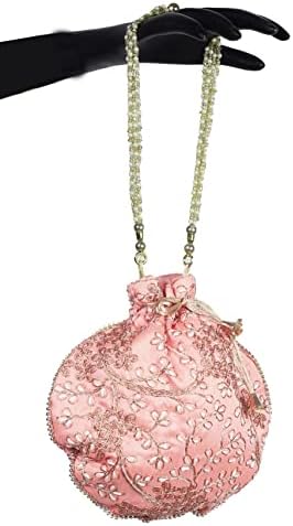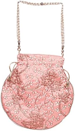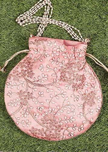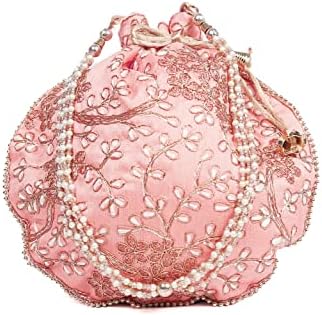 RIANGI Traditional Indian Hand Embroidery Floral Faux Pearl Rope Shopping Gift Jewelry Wedding Returns Gift Sweet Distribution drawstring bag Red Fancy purse bag