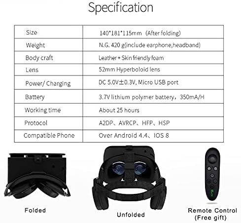 This wireless Bluetooth VR The headphones feature high-definition graphics and high-quality sound. A 110-degree view, immersed in an intimate IMAX film full of surprises. The 3D virtual reality glasses are collapsible and lightweight.